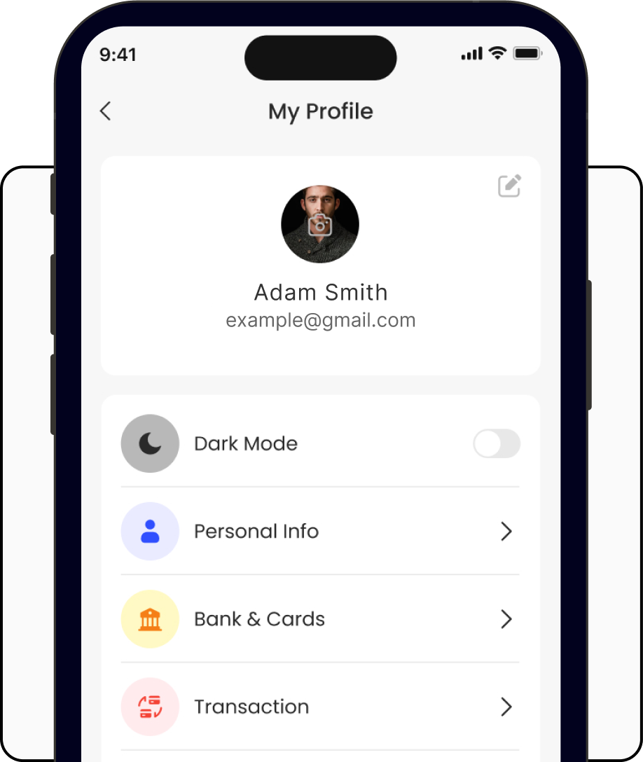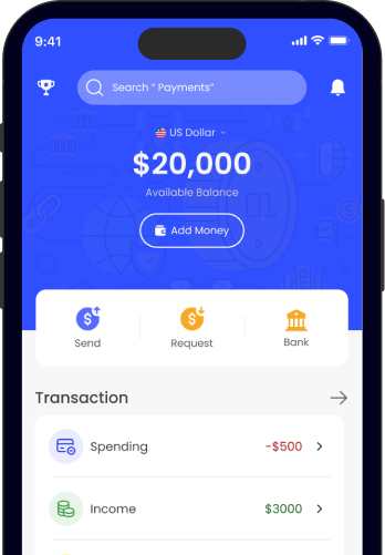 Users track income and expenses, categorize transactions, and view smart reports that show how they spend.